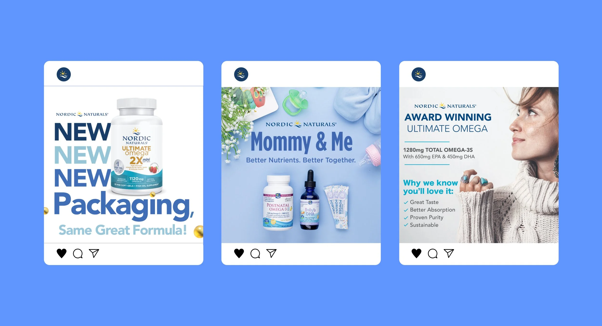 Paid marketing social posts for Meta to educate on products, benefits and updated packaging.
