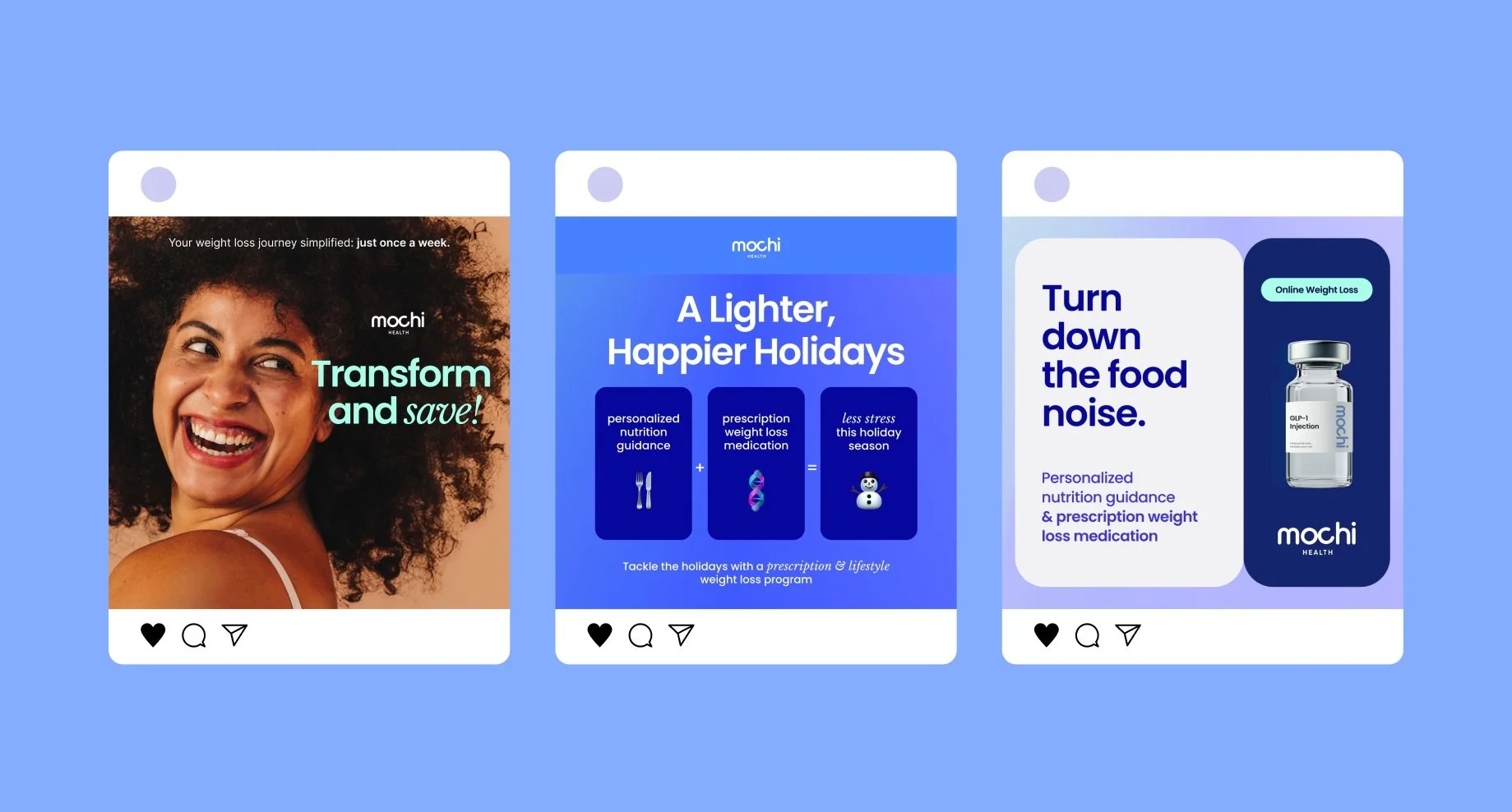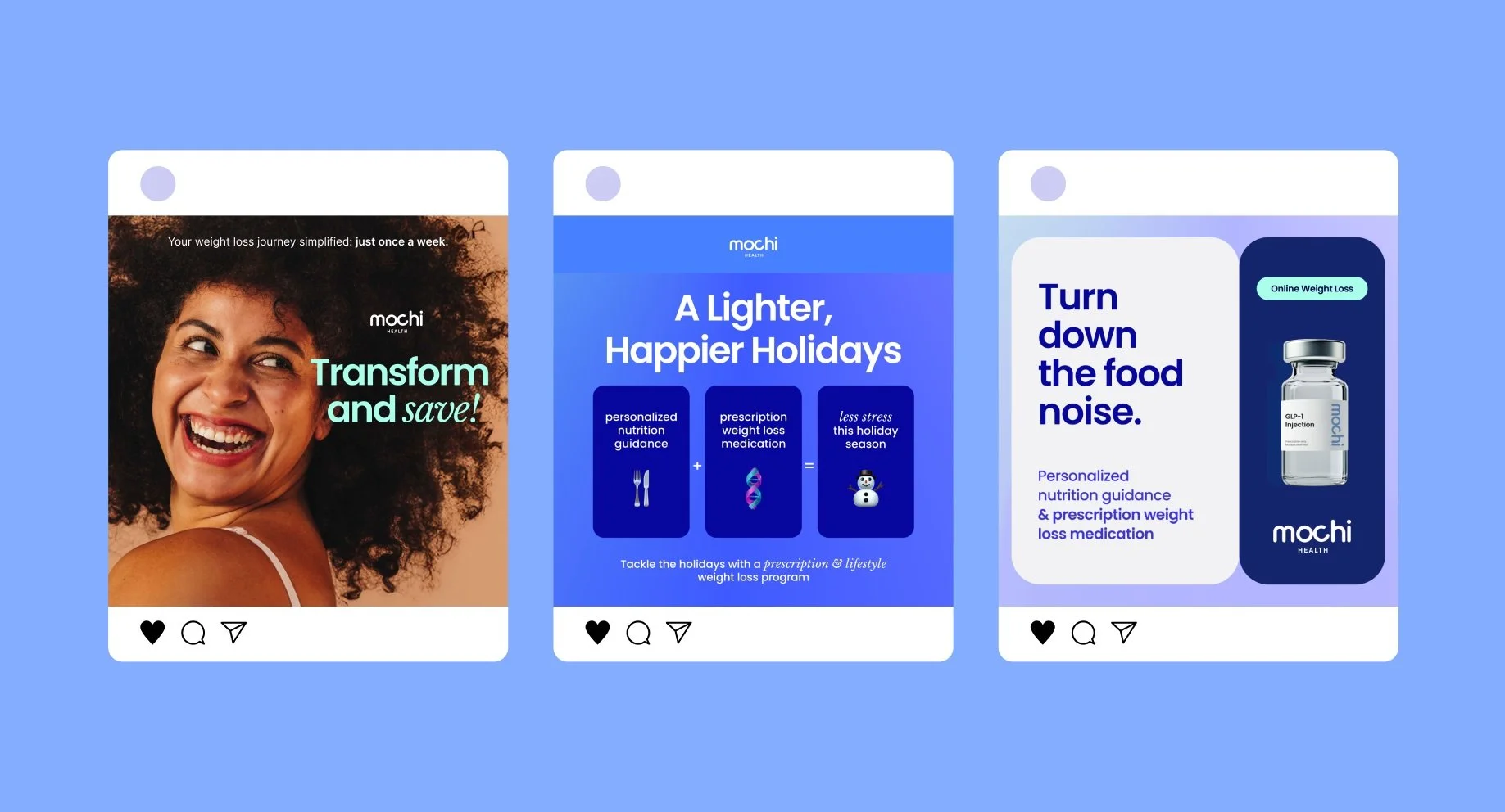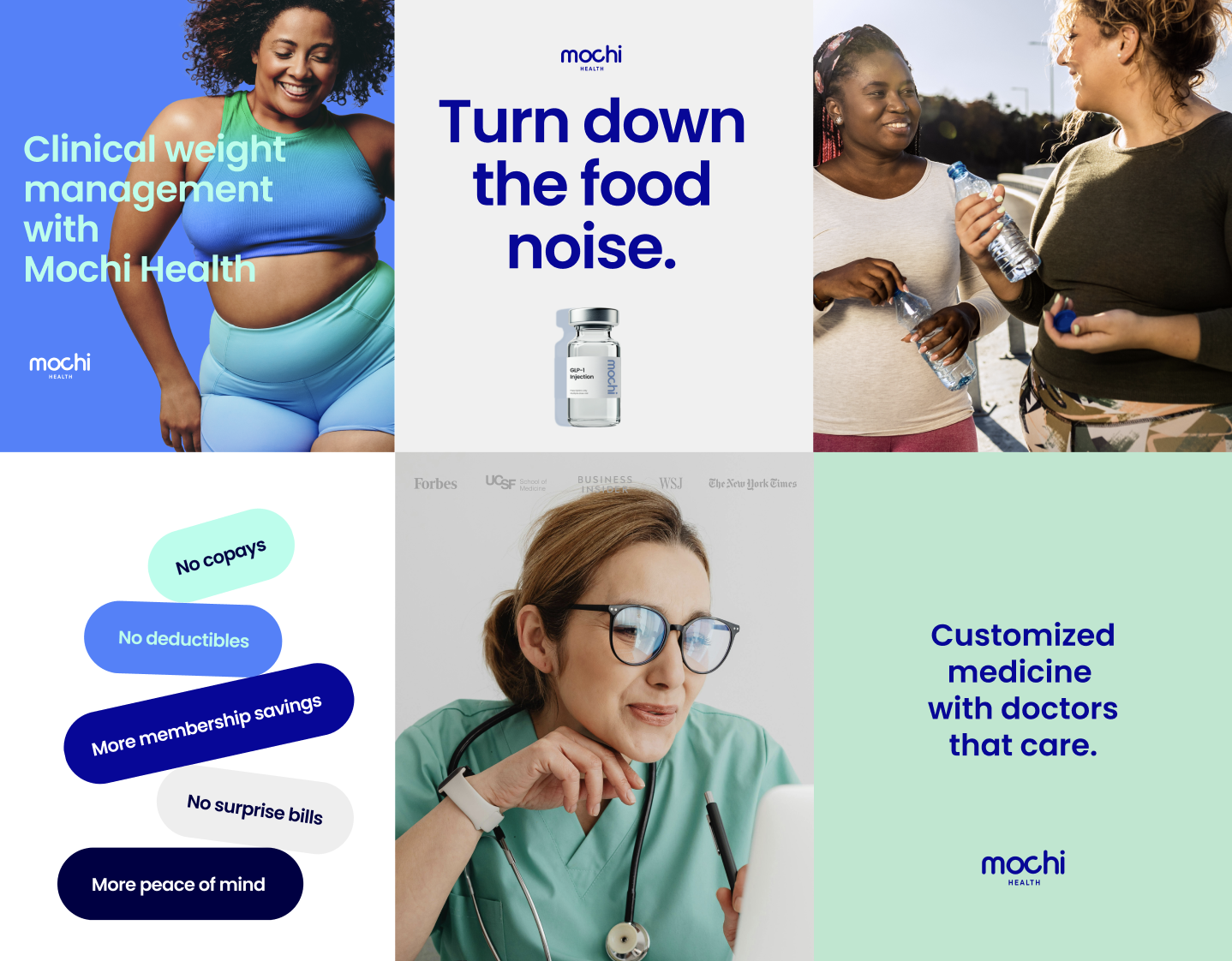 As Design Lead for Mochi Health’s rebrand, marketing, and social media, I helped shape a brand that challenges outdated healthcare narratives by shifting the focus on the conversation around weight care and management. I did this with the help of my marketing team where we emphasized support, empathy, and personalized care with the help of GLP-1s.