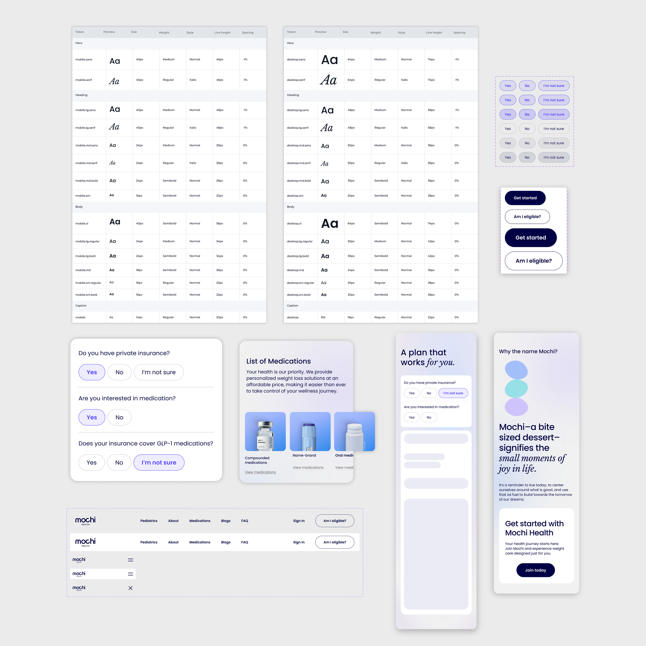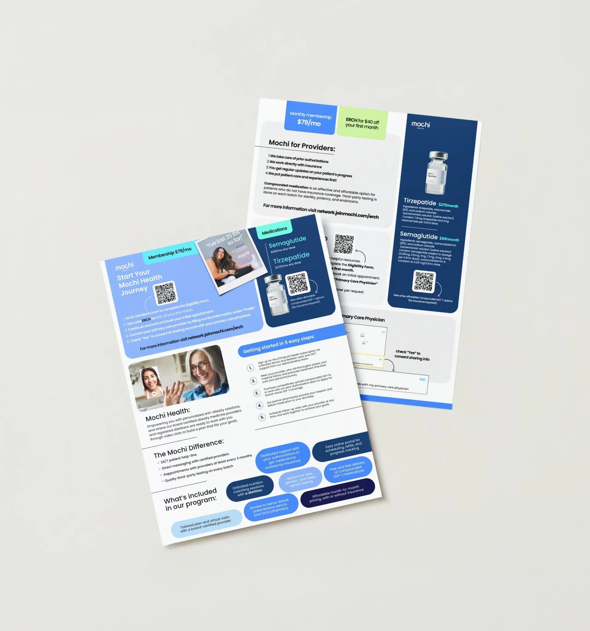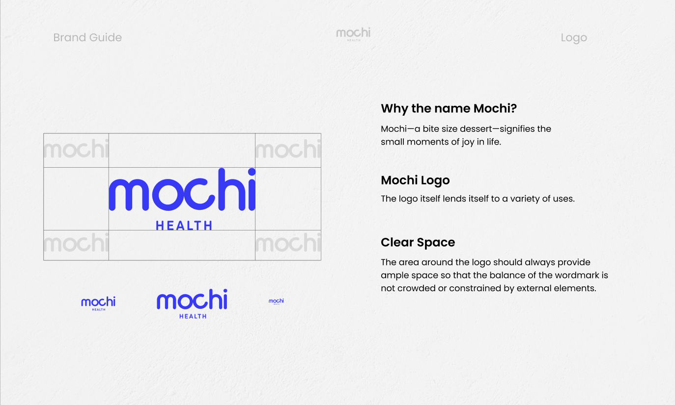 As the lead and solo graphic and brand designer for Mochi Health’s rebrand, I executed the new visual identity from the ground up. I carefully selected the color palette, typography, and imagery to create a brand that feels inclusive, approachable, and modern. Every design decision was made with intention, ensuring that Mochi’s new look reflects its mission of compassionate, personalized healthcare.