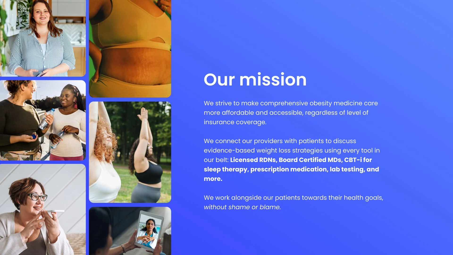 Women 35-55, working class battling obesity. Individuals with busy lifestyles, with demanding schedules seeking flexibility in accessing healthcare services without compromising their routines.
